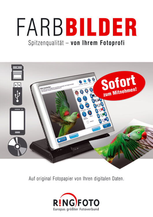 Mein Sofortprint für Ihre Bilder. Bringen Sie mir Ihr Speichermedium für Bilder im Format 10/15 bis 30/45 cm, für exzellente Bildqualität mit matter oder glänzender Oberfläche.